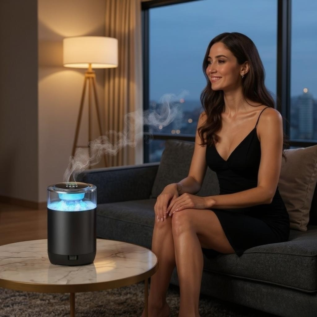 A soft, cloud-like mist that looks relaxing and feels refreshing — visual therapy meets aromatherapy.